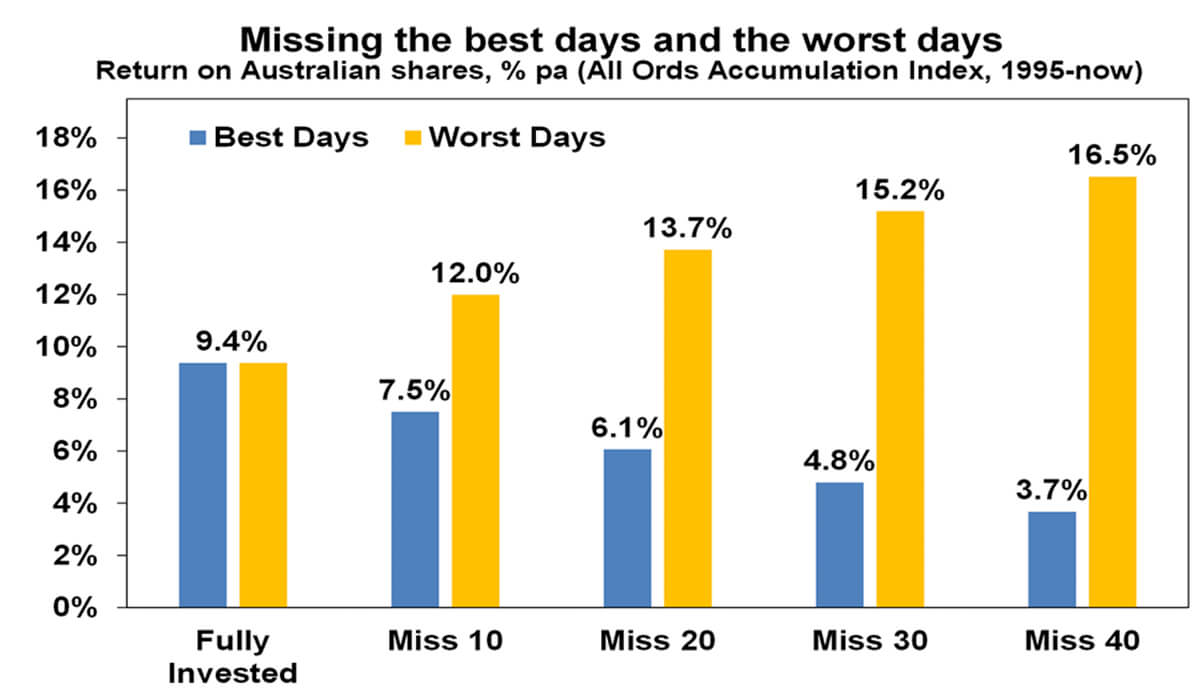 Key message: trying to time the share market is not easy. For most – whether as a super fund member or as an investor outside super – its best to stick to an appropriate well thought out long term investment strategy.